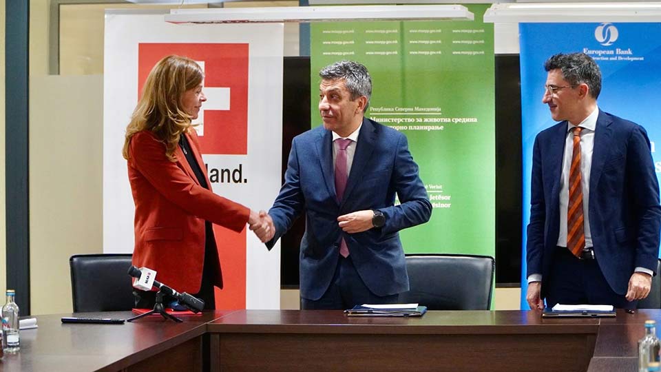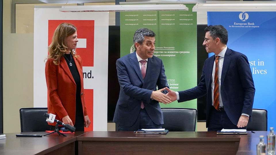 Скопје, 20.11.2024 г. Првиот потпретседател на Владата и министер за животна средина и просторно планирање г. Изет Меџити денеска потпиша договор за грант од 3 милиони евра со директорот на Канцеларијата на ЕБОР во Скопје, Матео Коланџели,наменети за процесот на собирање отпад во земјата.