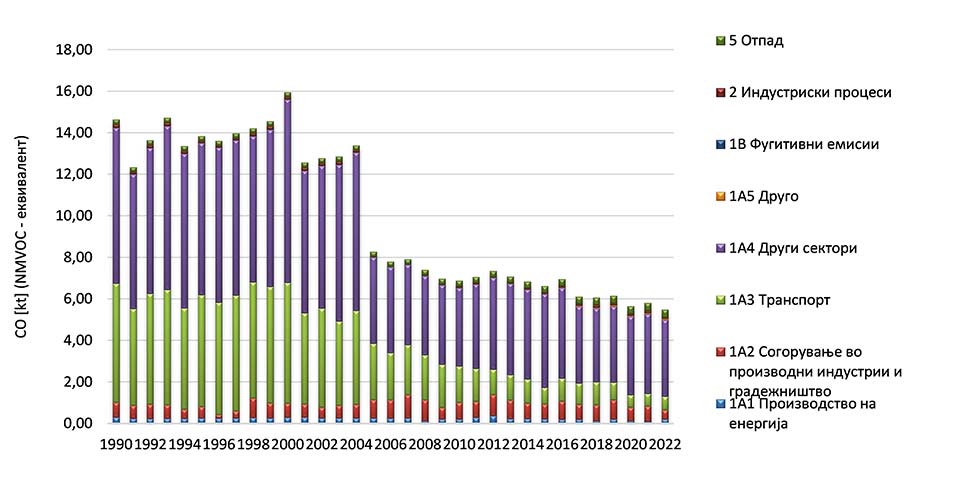 Уделите на емисиите на озонските прекурсори по сектори и нивната доминација во текот на извештајниот период се прикажани на графиконите со број од 2-5 за секој озонски прекурсор одделно.