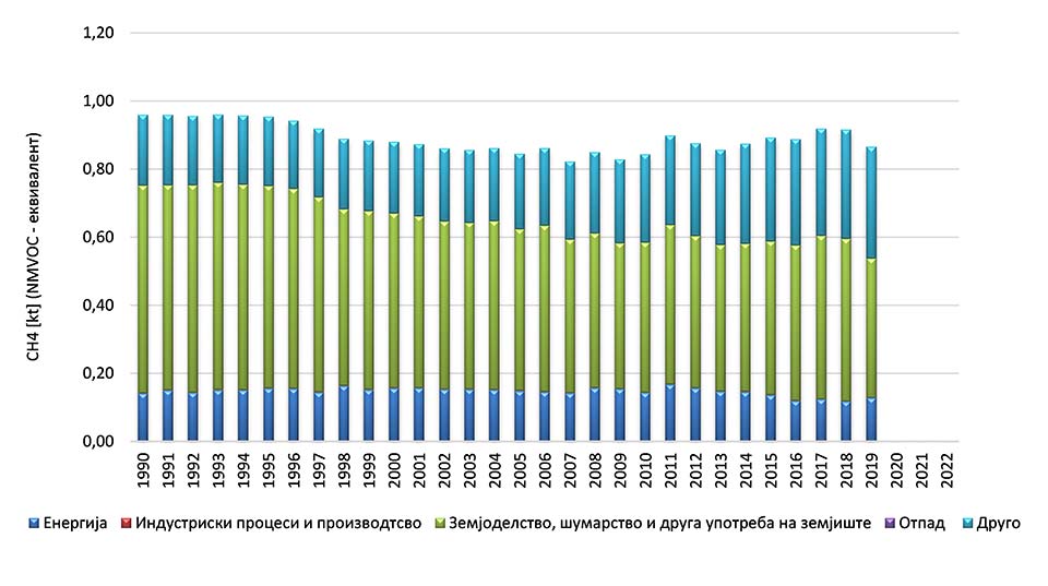 Инвентаризацијата на метанот како еден од прекурсорите на озон се врши по IPPC методологијата. Во рамките на Третата комуникација кон UNFCCC, подготвен е инвентар на стакленички гасови за период 1990-2020 година и од таму се земени податоците за емисии на метан по сектори.