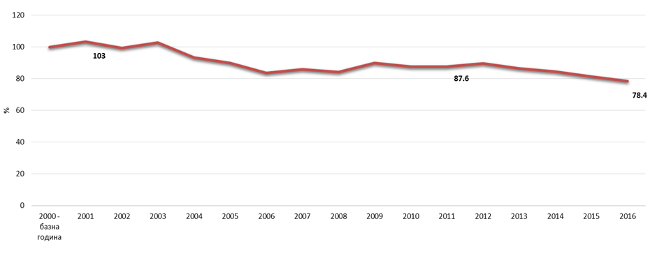 - индекс 100=2000 година