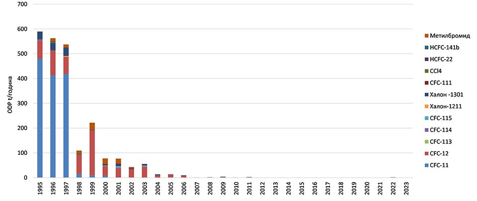 Извор на податоци: МЖСПП/Канцеларија за заштита на озонската обвивка