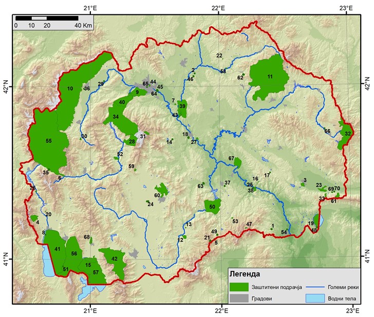 Со прогласувањето на новите заштитени подрачја во периодот од 2020 - 2024 година постигнат е значителен напредок во зголемувањето на вкупната површина на заштитени подрачја која зафаќа околу 14% од територија на државата и истите се прикажани на картата подолу (карта 1). Со тоа е направен прогрес и надминат е предвидениот процент на заштитени подрачја од 11,5% од територијата на државата што бил утврден до 2020 година во Просторниот План на државата (2004) и соодветната Секторска студија за заштита на природното наследство.