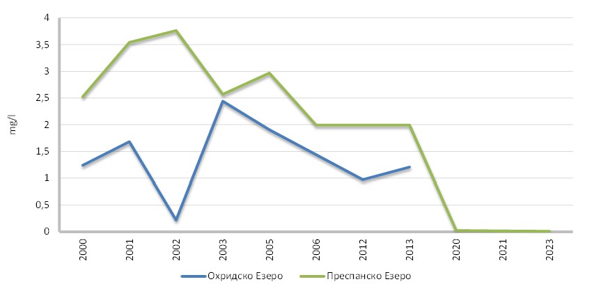 Од 2013 до 2016 година истражувањата се вршат во литоралот и пелагијалот на Преспанско Езеро каде е регистрирано опаѓање на концентрациите на нитрати и вкупен фосфор во однос на другите години. Концентрациите се значително повисоки во Преспанското Езеро, каде органските соединенија се на високо ниво, зголемувајќи го ризикот од еутрофикација на езерската вода.