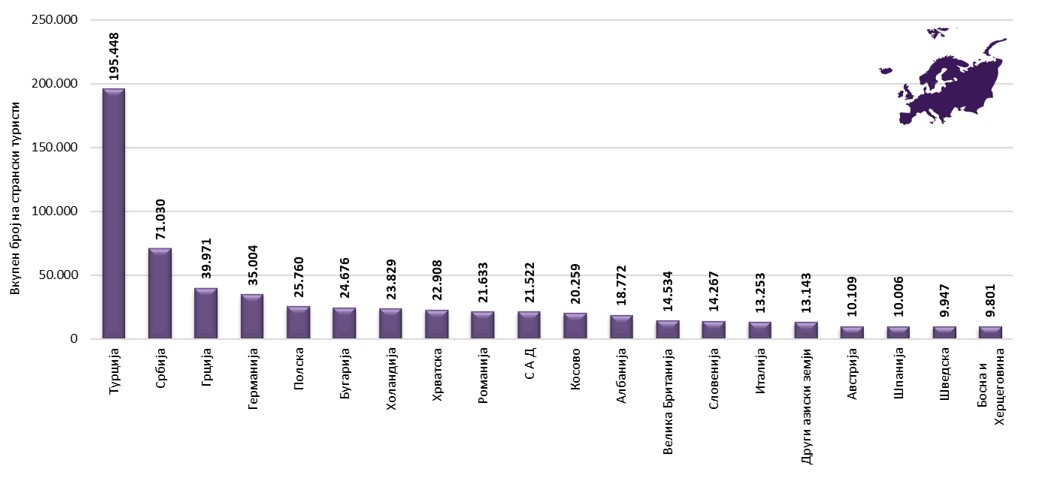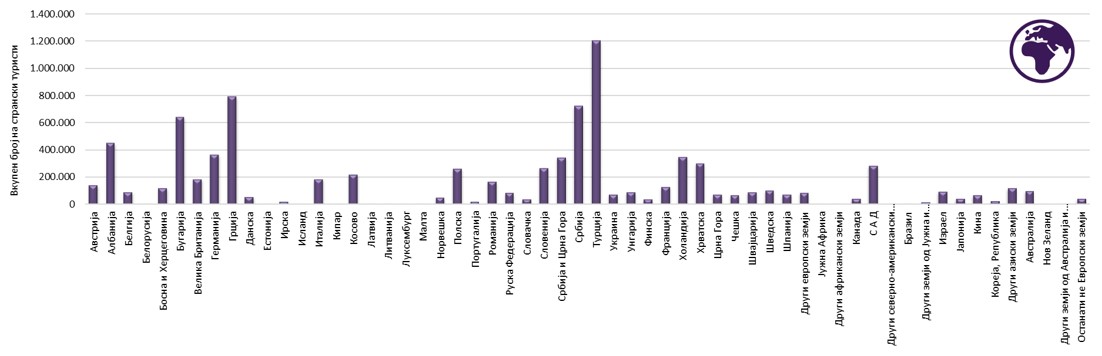 График 4. Вкупен број на странски туристи по земја на припадност во разгледуваниот период