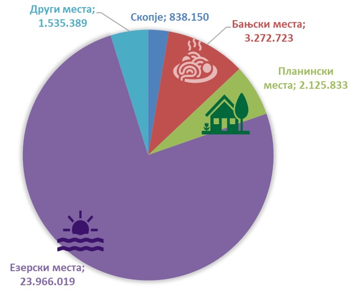 Во поглед на регионалната дистрибуција се очекува и во наредниов период концентрацијата на остварени ноќевања на домашните туристи да биде во езерските локалитети и Скопскиот плански регион. Очекуваниот притисок треба да се почувствува во регионите кои имаат поизразена динамика и растечки тренд, а тоа се СКПР, ЈЗПР, ЈИПР. Порастот на бројот на ноќевања во останатите региони во последните години треба да претставува чинител на избалансиран развој со одржливи карактеристики.