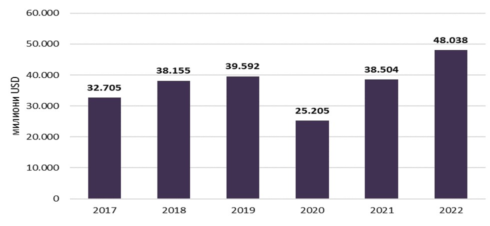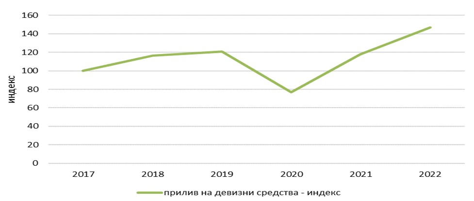 Највисоко ниво на остварени девизни приходи се реализирани во 2019 год. Но, со оглед на тоа дека за 2022 год. не се објавени приходите од последното тромесечје евидентно е дека тие ќе забележат највисоки остварувања.