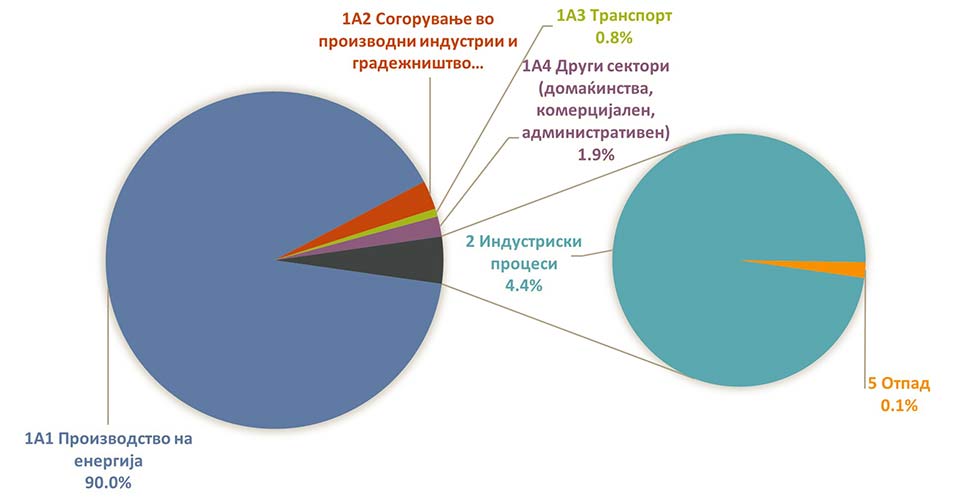 Ова намалување произлегува од намалената потрошувачка на фосилни горива, пред сé мазут, во производство на електрична енергија кај термоелектраните ТЕЦ Неготино, РЕК Битола и РЕК Осломеј и неработењето на рафинеријата Окта.