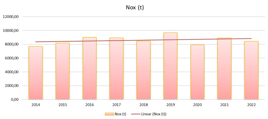 Во однос на азотните оксиди моделот покажува зголемување на емисиите на NOx од секторот патен транспорт за 9.6% во периодот 2014 – 2022 година. Ова се должи на воведувањето на контрола на емисиите и воведувањето на катализаторите кај дизел возилата, кој за сметка на намалувањето на N2O емисиите се емитуваат поголема количина на емисии на NOx .