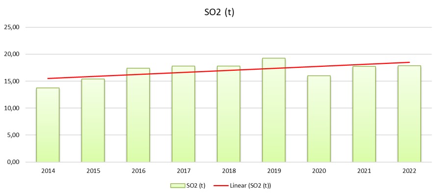 Емисиите на сулфурни оксиди или SO2 од секторот патен транспорт се зголемени за 29.5% во 2022, споредено со 2014 година. Зголемувањето на емисиите на сулфурни оксиди се должи на зголемената потрошувачка на дизел горива во периодот на опсервација.