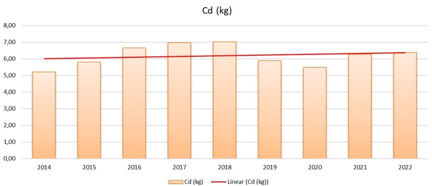 Слика 3. Тренд на емисии на кадмиум од транспорт