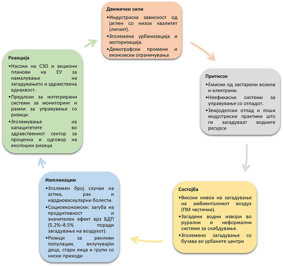 На Република Северна Македонија и недостасува единствена политика и стратегиски ориентиран документ со којшто ќе се воведе интегрален пристап во поставувањето на проблемот, во детекцијата на ризиците и во унапредувањето на сложените односи меѓу состојбите во животната средина и здравјето на населението.