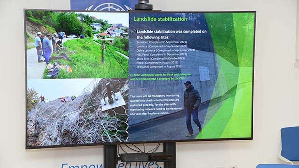 Во делот на реализација на мерки за урбана отпорност се елаборираа зафатите за чистење на атмосферската мрежа во градот Гостивар и изградба на атмосферска мрежа во градот Тетово, во делот на стабилизација на свлечишта беа претставени реализираните проектите: стабилизација на свлечиштето во Сенакос, стабилизација на свлечиштето во Ломница, стабилизација на свлечиштето во Долна Лешница, стабилизација на свлечиштето во Старо Село, стабилизација на свлечиштето во Пирок и свлечиштето во Јеловјане и стабилизација на свлечиште во ХЕЦ Пена.