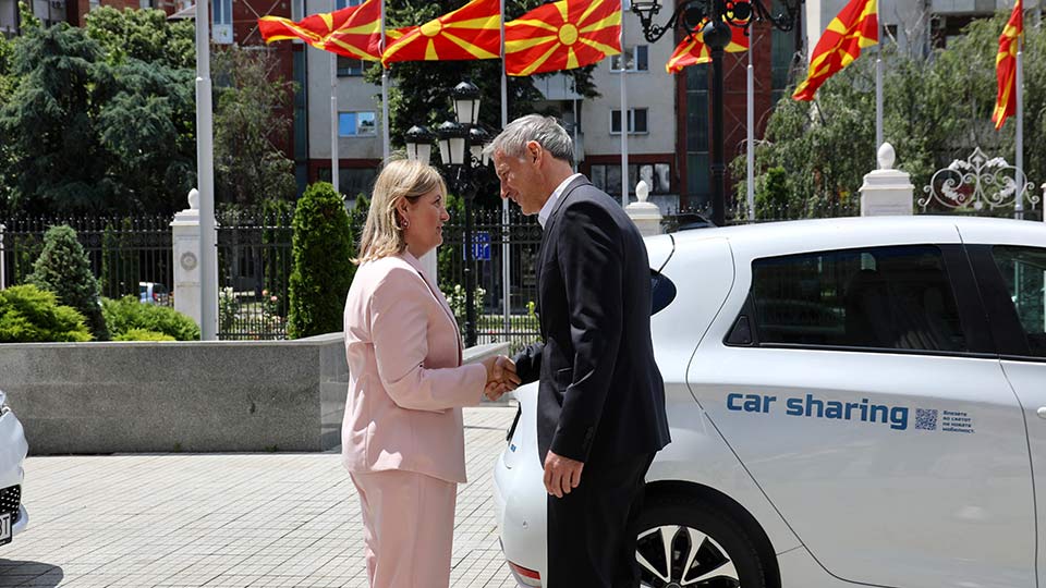 Скопје, 27.05.2025 Првиот заменик-претседател на Владата и министер за животна средина и просторно планирање, Изет Меџити, заедно со министерката за енергетика, рударство и минерални суровини, Сања Божиновска, денес пред Владата го промовираа новиот концепт за споделување возила – Car Sharing. Оваа услуга претставува значаен чекор кон одржлив урбан транспорт и намалување на загадувањето во земјата.