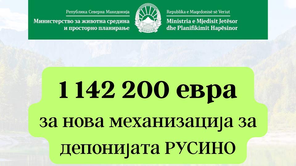 Со договорот, во вкупна вредност од 1 142 200 евра, ќе се набави комплетна механизација неопходна за модерно и безбедно управување со отпадот – вклучувајќи компактор, товарач, трактор со приколка за вода, камион и резервни делови. Набавката доаѓа како директен одговор на барањето што беше упатено до министерот Меџити за време на неговата неодамнешна теренска посета на депонијата Русино, при што тој веднаш се заложи да се одговори на потребите со конкретна поддршка.